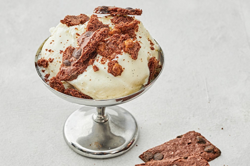 활용팁 ・잘게 부서진 브라우니 브리틀은 아이스크림의 토핑으로 활용하기 좋아요. 부드러운 아이스크림 사이로 씹히는 과자의 재미난 식감을 즐길 수 있답니다.