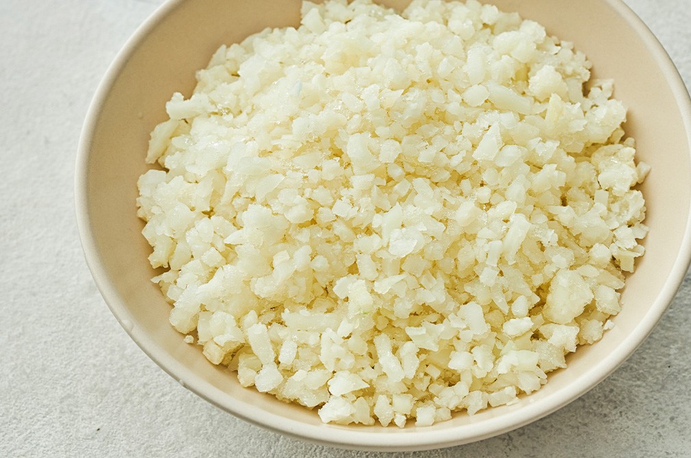 컬리플라워 라이스드로 주식도 칼로리 걱정 없이 즐겨 보세요. 농약 없이 깨끗하게 재배한 컬리플라워를 쌀알 모양으로 작게 썰어 급속 냉동했어요. 가볍게 데쳐 샐러드에 얹어 즐기는 토핑은 물론이고, 볶음밥에 쌀을 대신할 재료로 활용해 보세요.