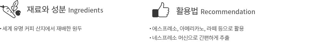 ・특징 : 견과의 고소한 풍미와 은은한 단맛이 매력적인 커피입니다. 늦은 밤에도 편안하게 마실 수 있어요.