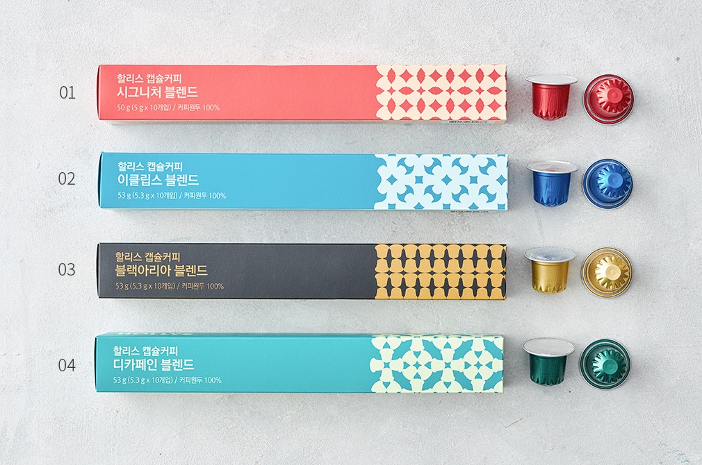 커피의 즐거움을 만드는 카페, 할리스. 이번에는 집에서도 할리스의 커피를 간편하게 즐길 수 있게 해주는 커피 캡슐을 소개할게요. 할리스만의 노하우를 담아 섬세하게 블렌딩하여 진한 풍미와 균형 잡힌 맛을 살렸답니다. 시그니처 블렌드부터 디카페인까지, 4가지 종류를 준비했으니 취향에 따라 선택해 보세요.