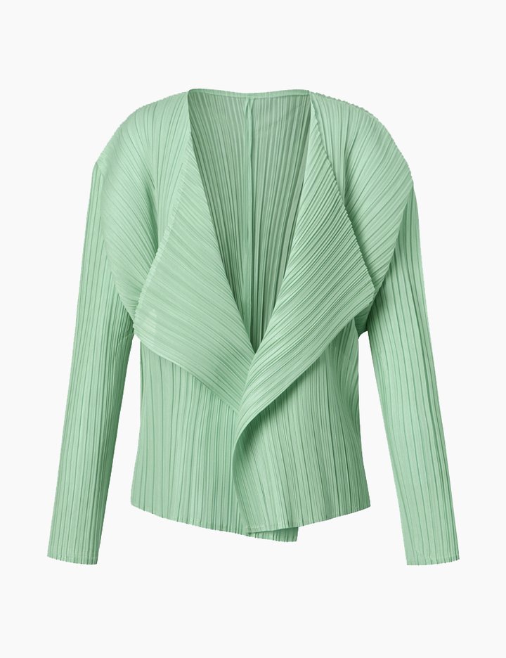 [몽플리쎄] 여성 경량 숄 카라 긴소매 플리츠 숏 가디건 (민트)