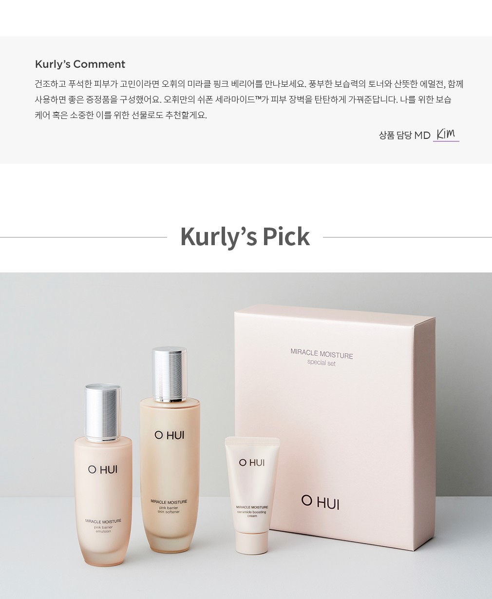 [오휘] 미라클 모이스처 핑크 베리어 2종 베이직 기획 (소프너150ml,에멀전100ml,크림25ml)