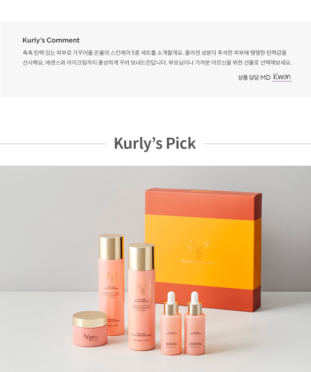 콜라겐 5종 세트 ・ 구성 : ①콜라겐 스페셜 스킨, ②콜라겐 스페셜 로션, ③콜라겐 스페셜 에센스, ④콜라겐 스페셜 아이크림, ⑤콜라겐 스페셜 크림