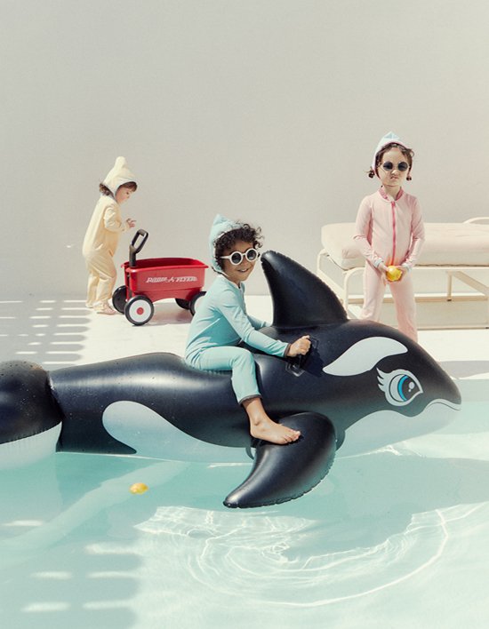 유니크한 컬러 배색으로 화사하고 세련된 분위기를 주는 래쉬가드 세트입니다.