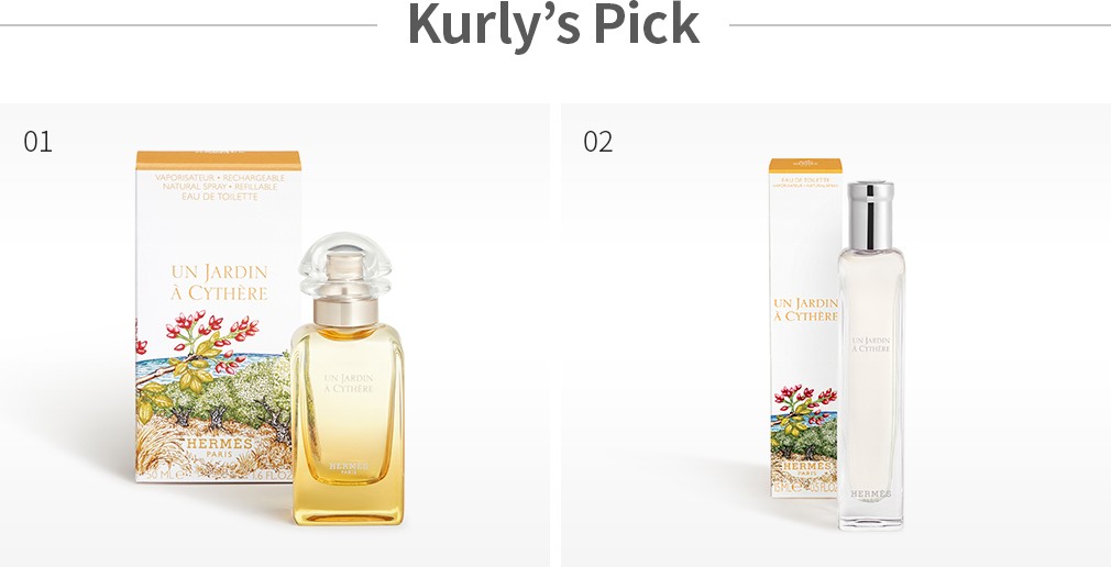 그리스 정원으로의 초대 운 자르뎅 아 시테르는 예술가들이 사랑한 그리스 시테르 섬의 정원을 표현한 향수입니다. 에르메스의 조향사 크리스틴 나이젤이 어린시절 떠난 그리스 여행의 기억을 조각조각 모아 완성했죠. 황금빛으로 물든 목초와 따스한 햇살을 머금은 올리브 나무, 그 너머로 보이는 맑은 하늘과 푸른 바다를 상상해보세요.