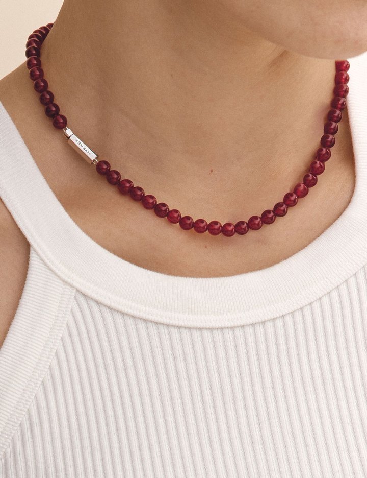 [이에르로르] H에디션 (W) 볼 제이드 비즈 목걸이 (레드)