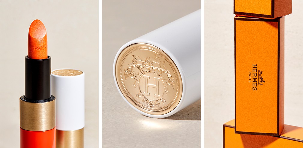 감각적인 오브제 루즈 에르메스 포피 립 샤인에는 오랫동안 지켜온 에르메스의 철학과 장인 정신이 오롯이 깃들어 있습니다. 에르메스의 시그니처인 오렌지 컬러와 반짝이는 마더 오브 펄, 그리고 그 위를 에르메스 로고가 선명하게 자리하고 있죠.