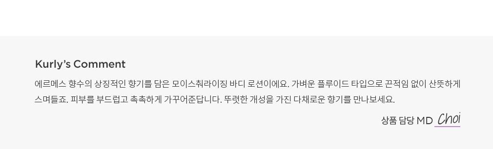 ・ 사용감 : 부드럽게 발리고 끈적임 없이 빠르고 매끄럽게 스며들어요.