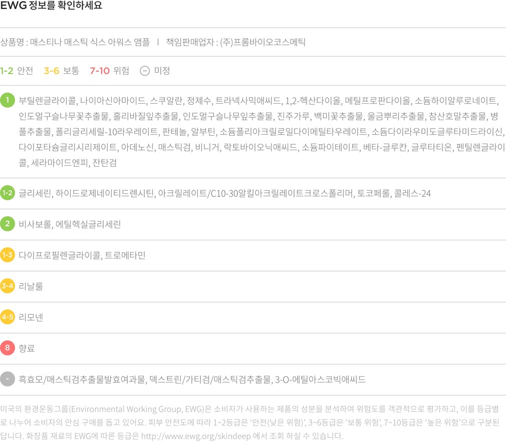 증정품 ・ 특징 : 화이트매스틱 식스아워스 앰플 5매(각 1mL)를 함께 보내드립니다.