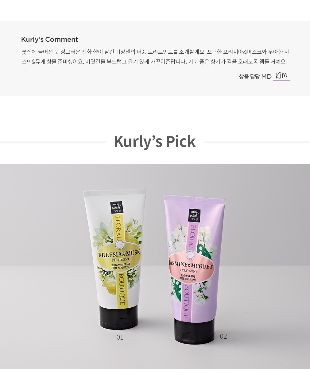 02. 플로럴 부띠끄 퍼퓸 트리트먼트 쟈스민 앤 뮤게 ・ 용량 : 1개(300mL)