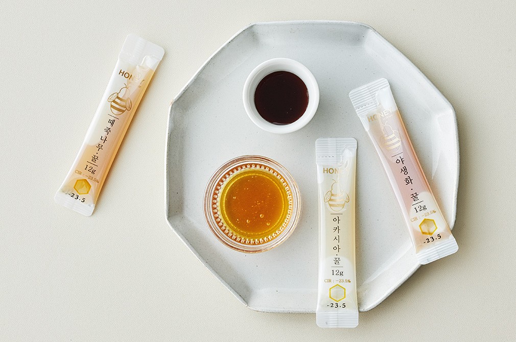 구성을 확인하세요 ・이십삼쩜오의 허니스틱에는 5가지 종류의 꿀이 들어있어요. 종류별과 맛과 향, 색을 비교해 보세요.
