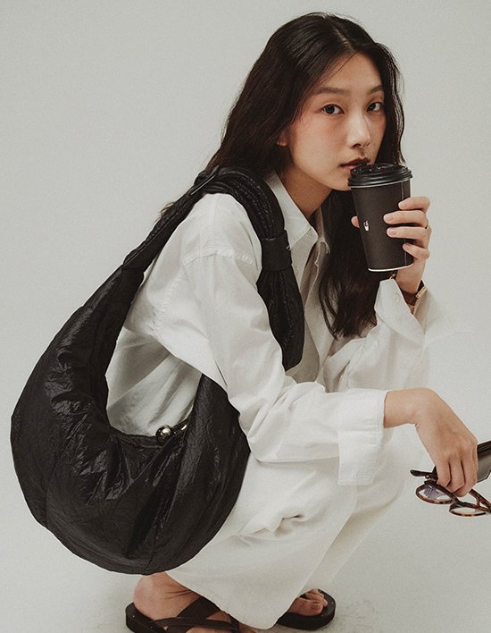 크랙감이 있는 나일론 소재로 가벼우며 길이 조절이 가능한 수납하기 좋은 빅백