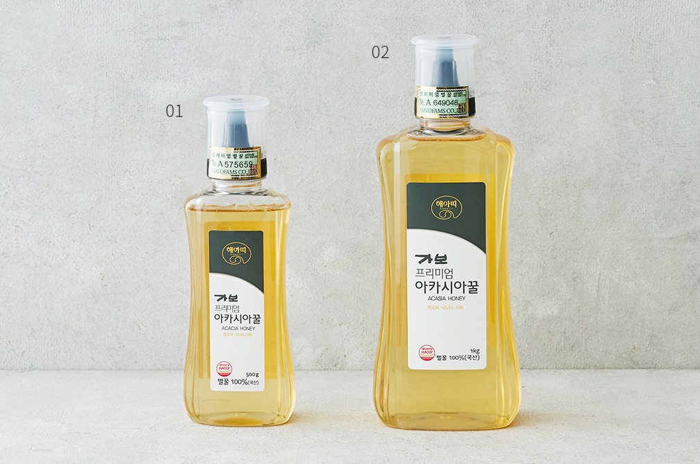 01~02. 프리미어 아카시아꿀 (1+등급) ・중량 : ①500g, ②1kg 중 선택하세요.