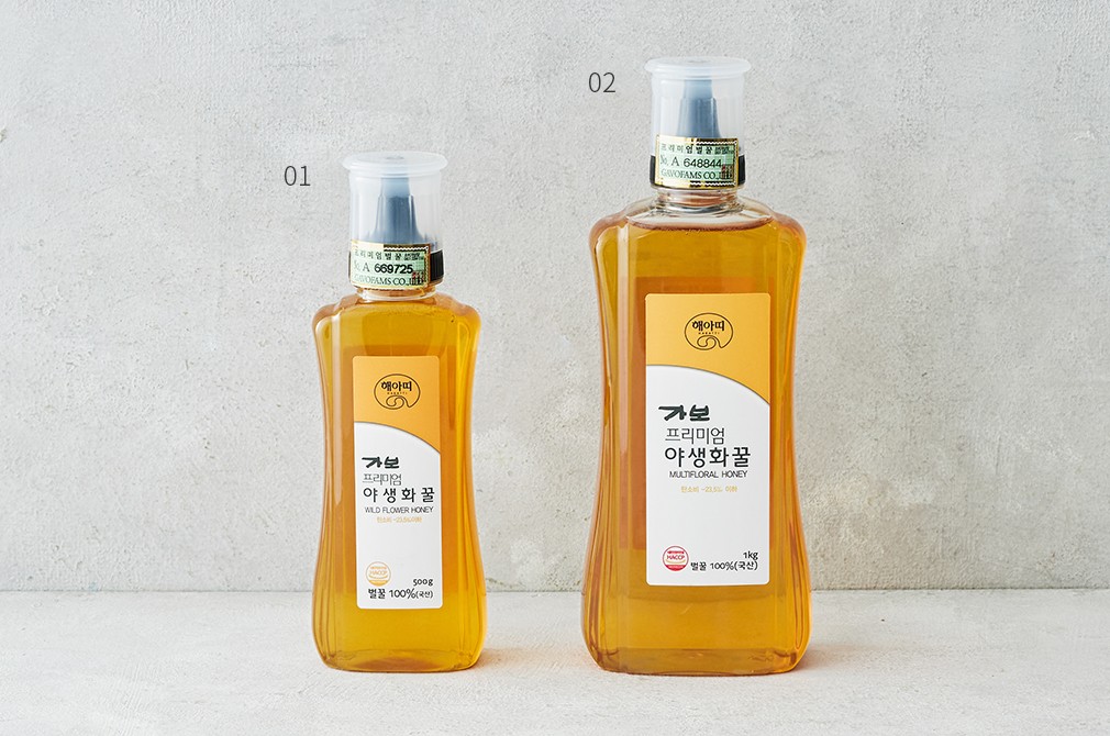 01~02. 프리미어 야생화꿀 (1+등급) ・중량 : ①500g, ②1kg 중 선택하세요.