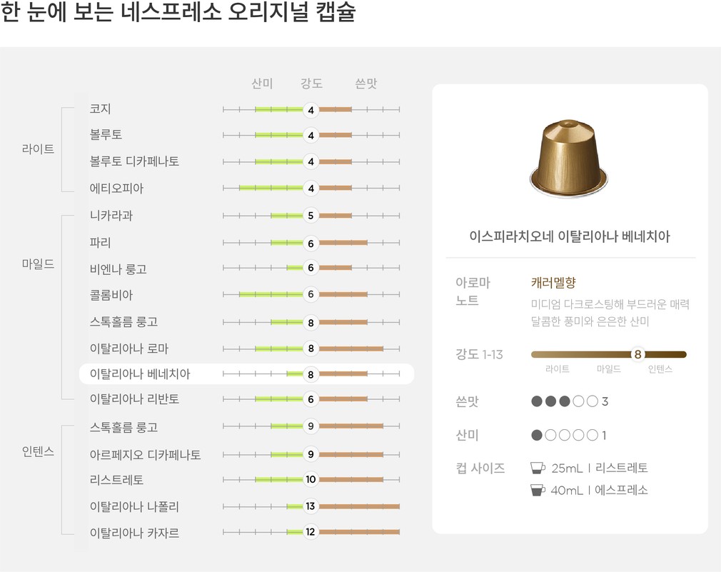 [네스프레소] 이스피라치오네 이탈리아나 베네치아 커피 캡슐 10개입(25mL or 40mL)