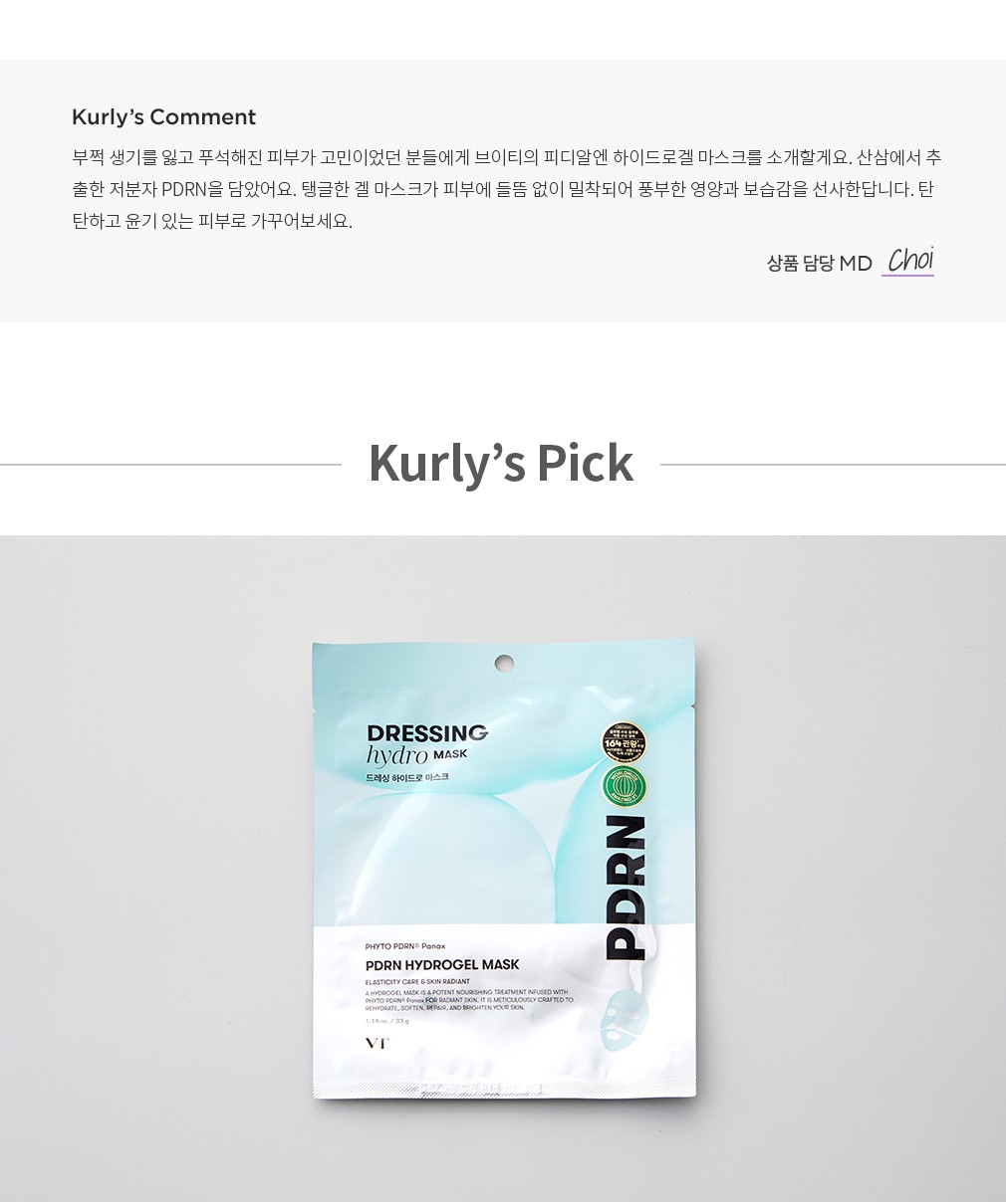 피디알엔 하이드로겔 마스크 ・ 중량 : 1매(33g)