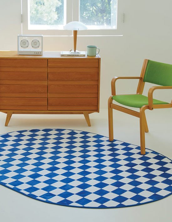 [더러그]레트로 체커보드 타원형 러그 블루 6종 (택1)