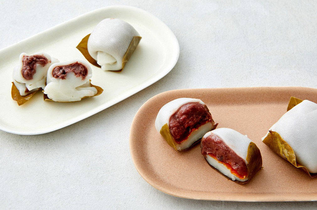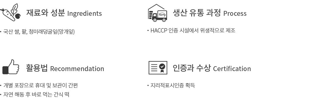 ・특징 : 쫄깃한 반죽 속에 달콤판 팥 앙금을 채워 완성했어요. 상큼한 망개잎의 향이 은은하게 배어 있답니다.