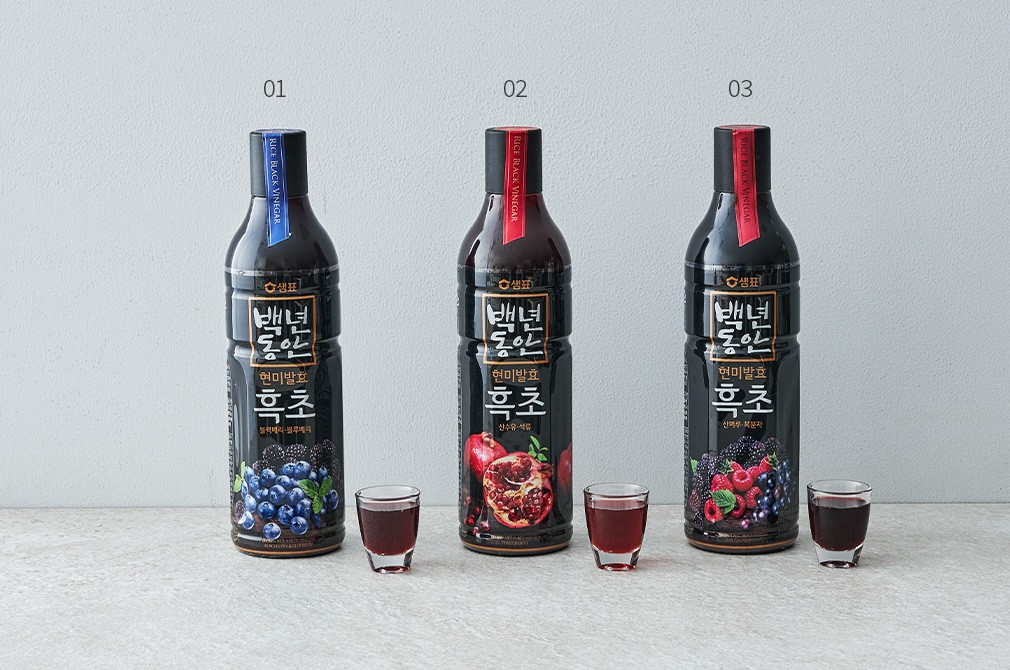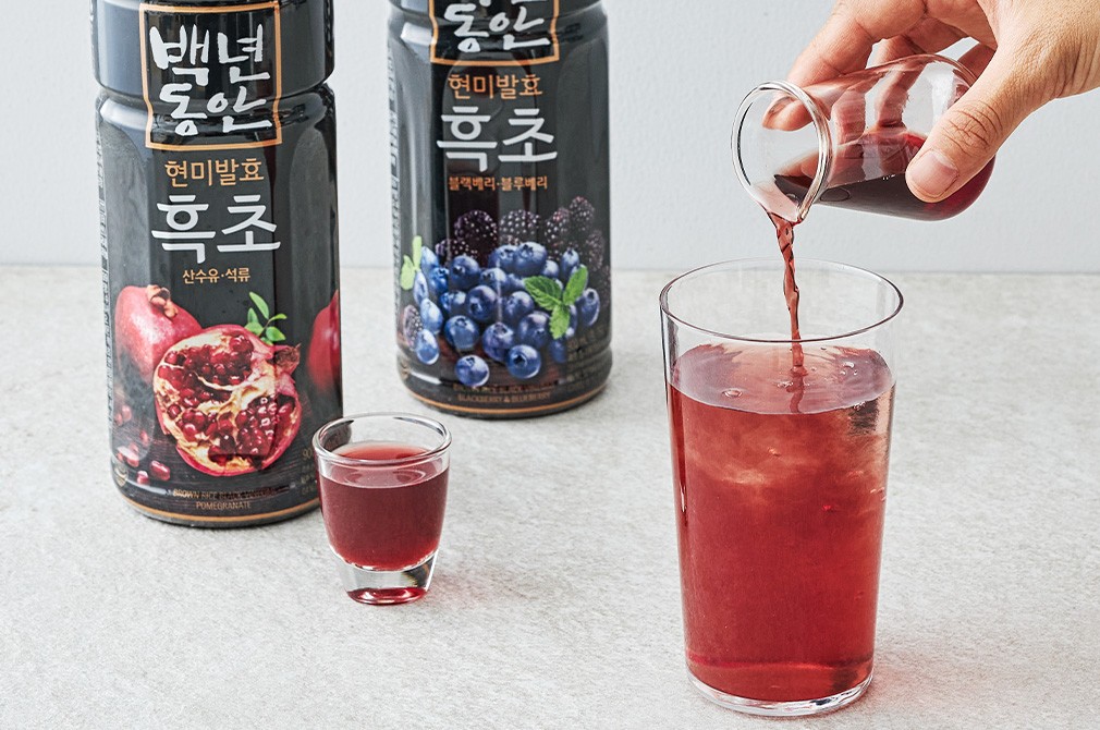 ‘식초의 왕’이라 불리는 흑초. 백년동안의 특별한 노하우로 완성한 세 가지 흑초를 만나보세요. 특허*받은 방식으로 완성한 흑초랍니다. 통알곡 생현미를 효모, 젖산 발효해 더욱 특별하죠. 원물 고유의 영양과 풍미를 고스란히 담아냈기에 믿고 드실 수 있답니다.