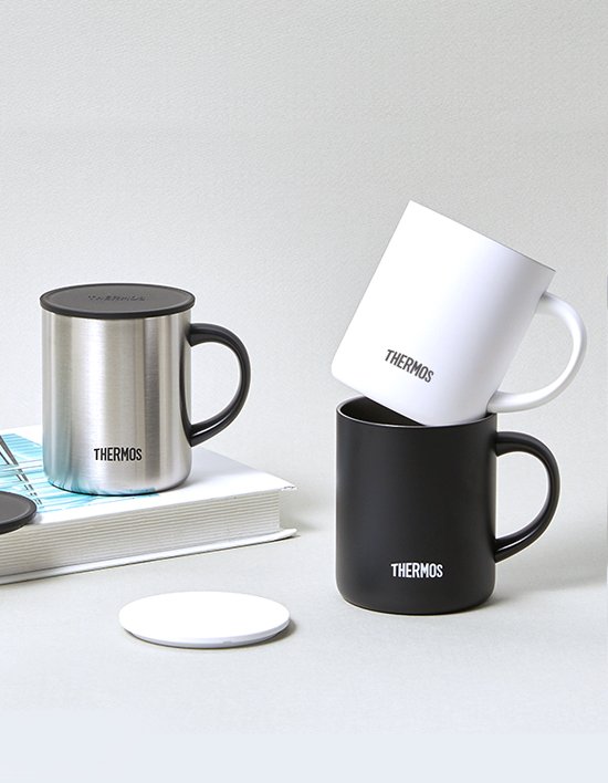 써모스만의 진공단열로 보온보냉이 가능하며 스테디한 컬러감과 매트한 질감으로 도자기 머그컵의 사용감을 그대로 느낄 수 있는 반전 머그컵 입니다.