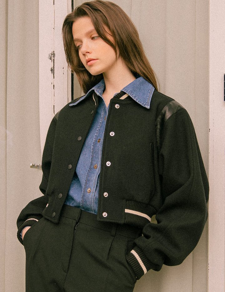 [반원 아틀리에] 아이리시 크롭 바시티 재킷_블랙(O3707)