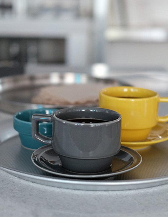 손잡이 안쪽을 불편하지 않도록 둥글게 가공한 블럭 머그 앤 소서