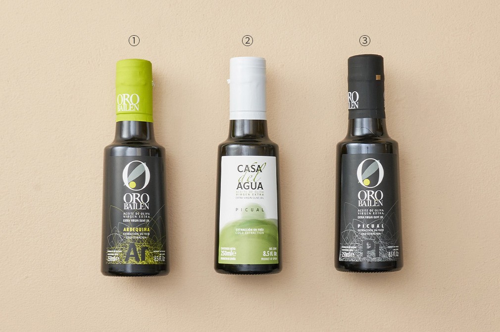 올리브오일 선물세트 OB3 3호 ・구성 : ①엑스트라버진 올리브오일-아르베퀴나, ②엑스트라버진 올리브오일-카사델아구아, ③엑스트라버진 올리브오일-피쿠알
