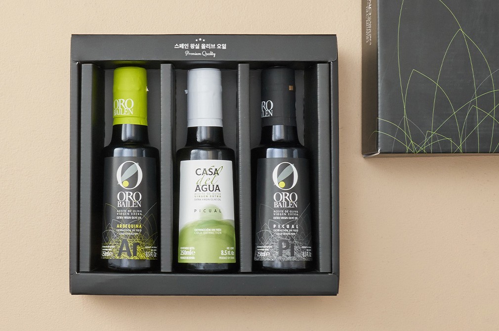 스페인 남부 안달루시아에 위치한 올리브 농장, 오로바일렌이 선보이는 엑스트라버진 올리브오일을 만나보세요. 아르베퀴나와 카사델아구아, 피쿠알까지 가지각색 저마다의 개성을 지닌 세 가지 오일을 한데 꾸린 선물세트랍니다. 냉추출 방식으로 오일을 생산해 푸릇하고 신선한 맛과 향을 오롯이 품고 있죠. 구성이 다채로우니 고마운 마음을 전할 선물로 제격일 거예요.