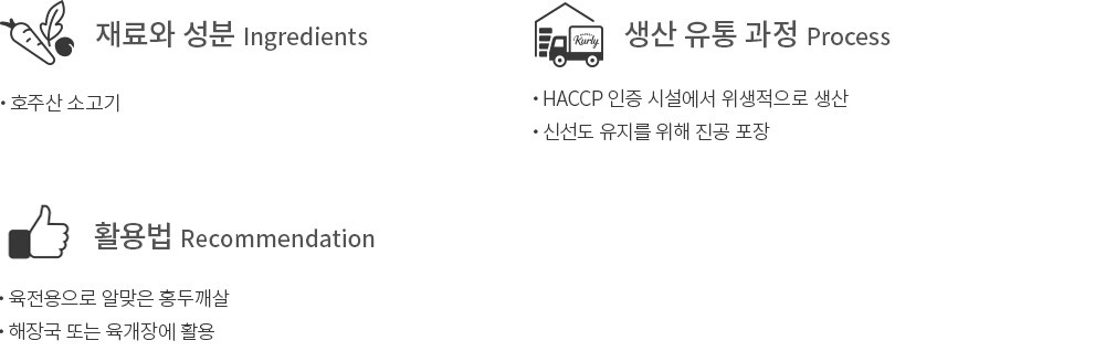 - 소고기 함유 - 이 제품은 알레르기 유발성분(돼지고기)을 사용한 제품과 같은 제조시설에서 제조하고 있습니다.