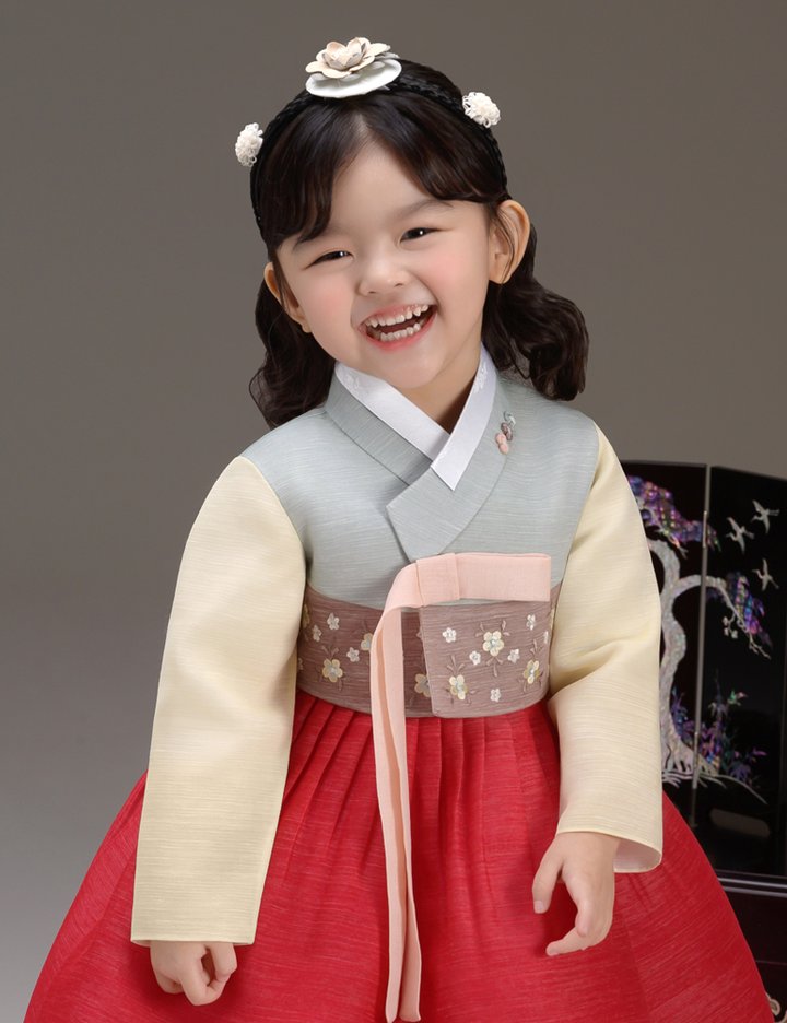 [더예한복] QT825-채린홍 여아 아동한복