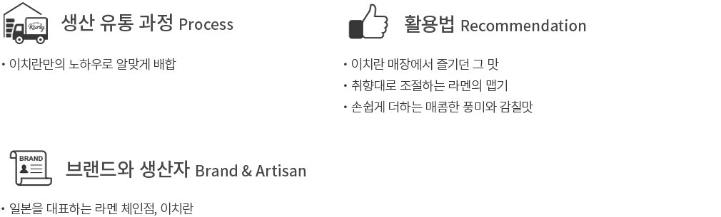 이치란은 일본 여행을 계획할 때 빠지지 않는 라멘 맛집이죠. 깊고 진한 돈코츠 육수의 국물과 함께, 취향에 따라 맵기를 조절할 수 있는 것 역시 이치란의 매력인데요. 지금 소개하는 상품은 실제로 이치란 매장에서 내는 특제 빨간 비법 분말이랍니다. 이치란만의 노하우로 혼합한 고춧가루에 후추를 더하고 며칠 동안 숙성시켜 완성했어요. 라멘에 솔솔 뿌려 감칠맛을 더하고 취향에 맞는 맵기로 조절해 보세요.