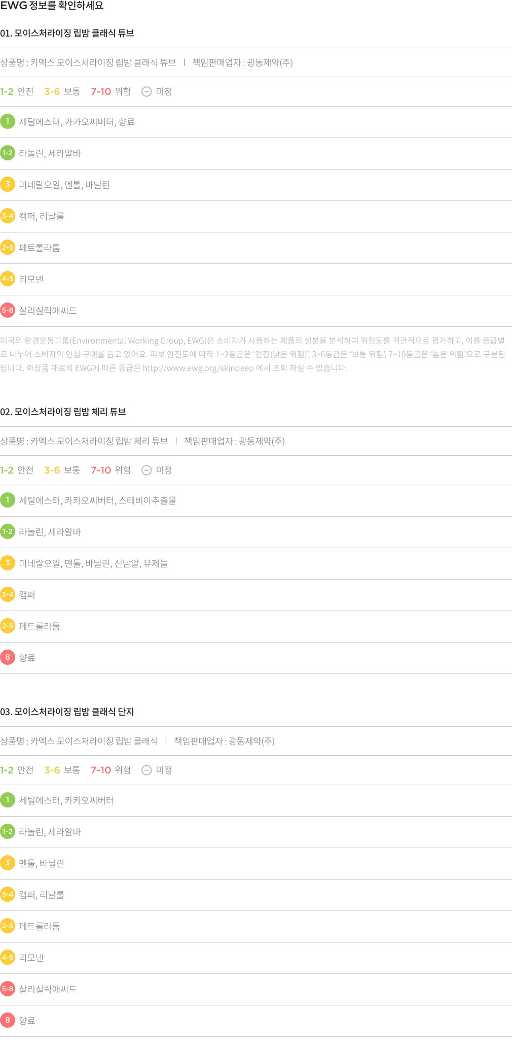 01. 모이스처라이징 립밤 클래식 튜브 ・ 중량 : 1개(10g)