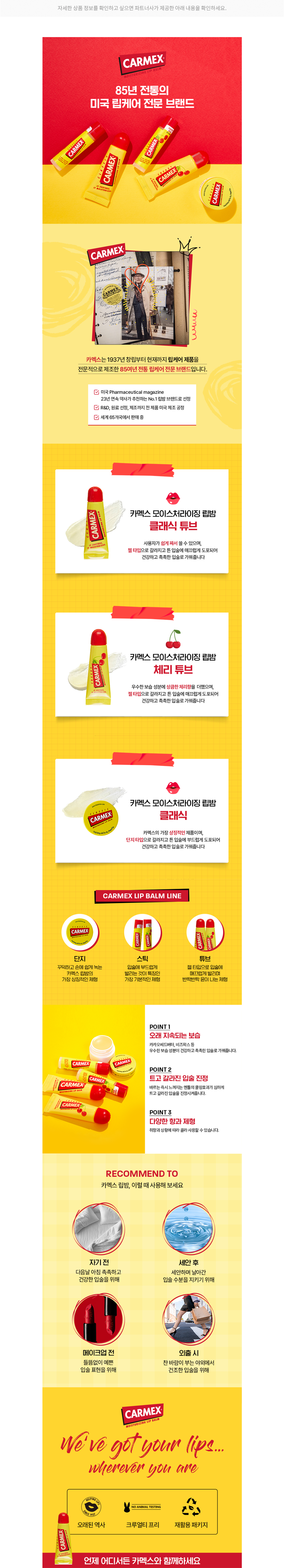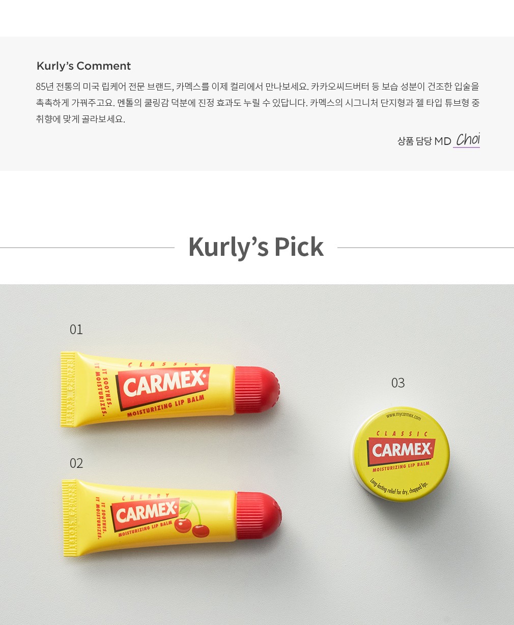 ・ 특징 : 카멕스의 시그니처 립밤으로, 무색 무향 제품입니다. 꾸덕한 제형이 부드럽게 녹아들어요.