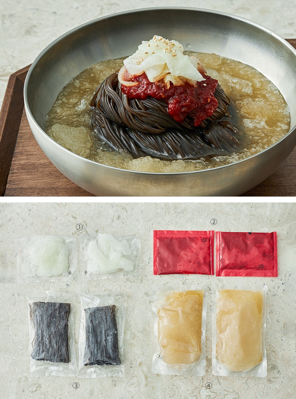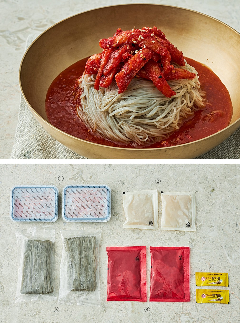 * [소반옥] 물비빔냉면 -칡냉면사리: 밀, 메밀 함유 -물비빔냉면육수: 밀, 대두, 우유, 닭고기, 쇠고기 함유 -물비빔냉면소스: 대두, 밀, 쇠고기, 닭고기, 우유 함유 -이 제품은 계란, 땅콩, 고등어, 게, 새우, 돼지고기, 복숭아, 토마토, 아황산류, 호두, 오징어, 조개류(굴, 전복, 홍합 포함), 잣 등을 사용한 제품과 같은 제조시설에서 제조 * [소반옥] 정통 함흥 회냉면 (2인분) -함흥냉면사리: 밀, 오징어 함유 -회냉면소스: 대두, 밀, 쇠고기 함유 -회냉면육수: 대두, 밀, 쇠고기, 닭고기, 우유 함유 -명태회무침: 대두, 밀, 새우, 조개류 함유 -고소한 참기름: 대두, 밀 함유 -이 제품은 계란, 메밀, 땅콩, 고등어, 게, 돼지고기, 복숭아, 토마토, 아황산류, 호두, 조개류(굴, 전복, 홍합 포함), 잣 등을 사용한 제품과 같은 제조시설에서 제조