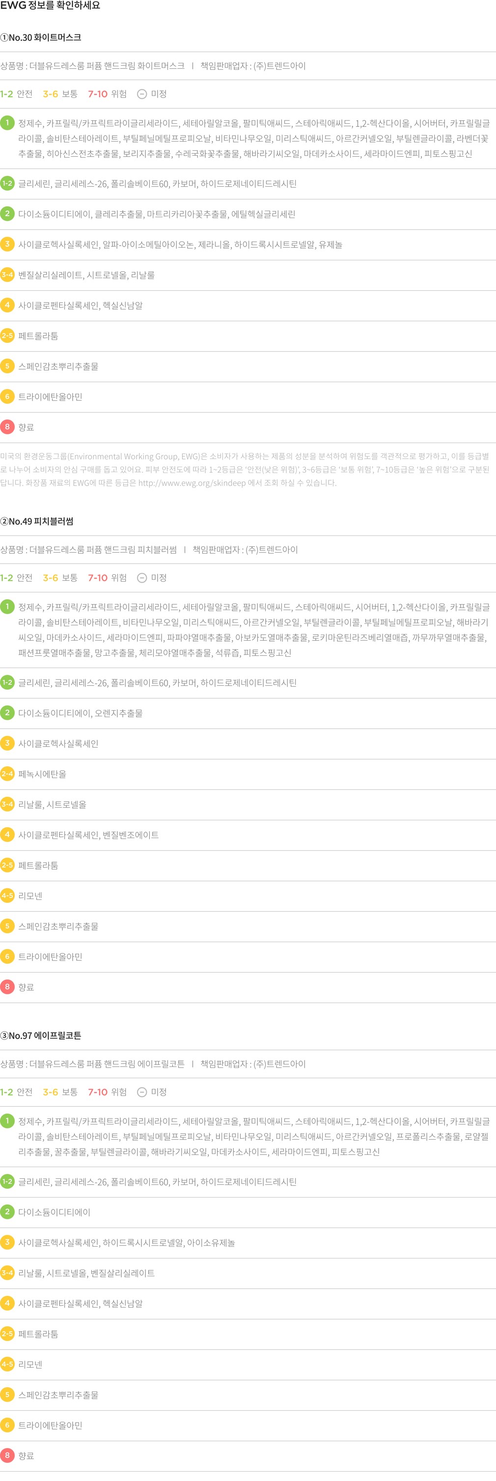 퍼퓸 핸드크림 3종 세트 ・ 구성 : ①No.30 화이트머스크, ②No.49 피치블러썸, ③No.97 에이프릴코튼