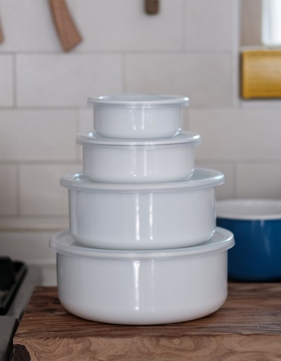 사이즈에 따라 다양한 용도로 활용이 가능한 법랑 화이트 시리즈 원형 용기