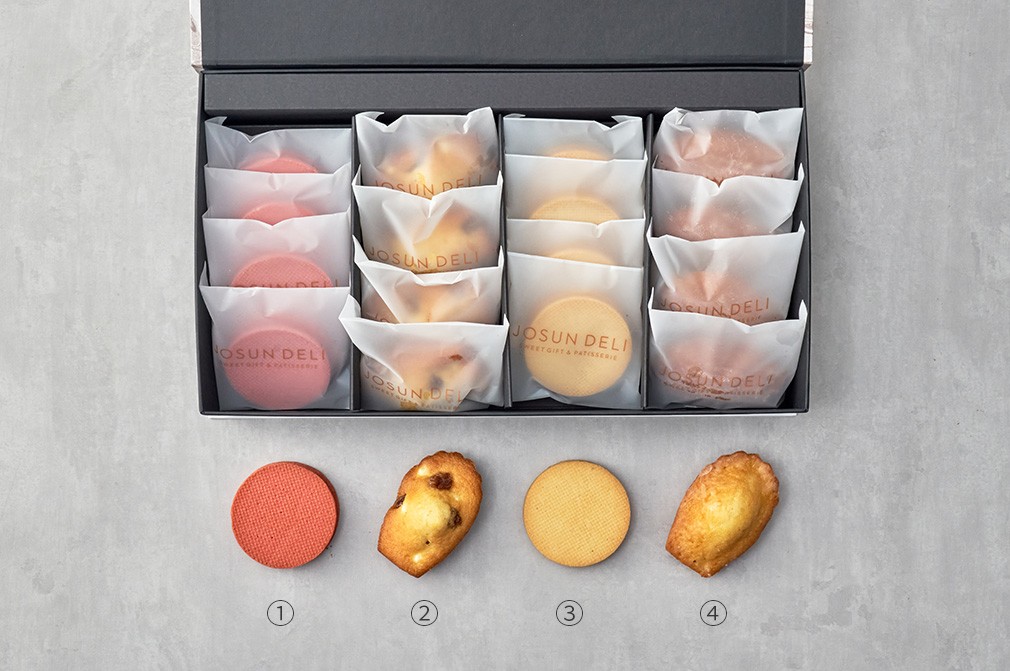 ・구성 : ①딸기산도, ②무화과 크림치즈 마들렌, ③바닐라산도, ④레몬 유자 마들렌 각 4개입
