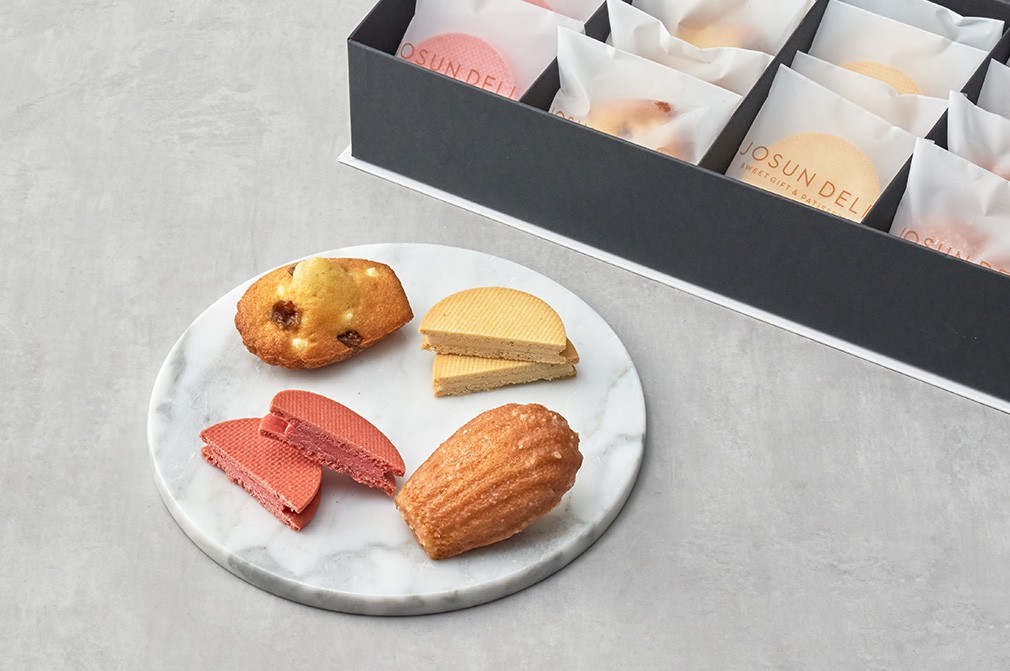 조선호텔 100년의 노하우를 담은 브랜드, 조선델리의 쿠키선물세트를 소개할게요. 뉴질랜드산 버터, 크림치즈 등을 사용한 것은 물론, 조선델리만의 특별한 레시피로 품격있게 완성했답니다. 달콤한 크림을 샌드한 2가지 산도, 부드러운 달콤함이 돋보이는 마들렌 2가지를 담아 보내드려요. 소중한 분들께 건네는 고급스러운 디저트로 추천할게요.