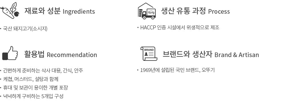 - 돼지고기, 대두, 밀, 우유, 계란, 함유