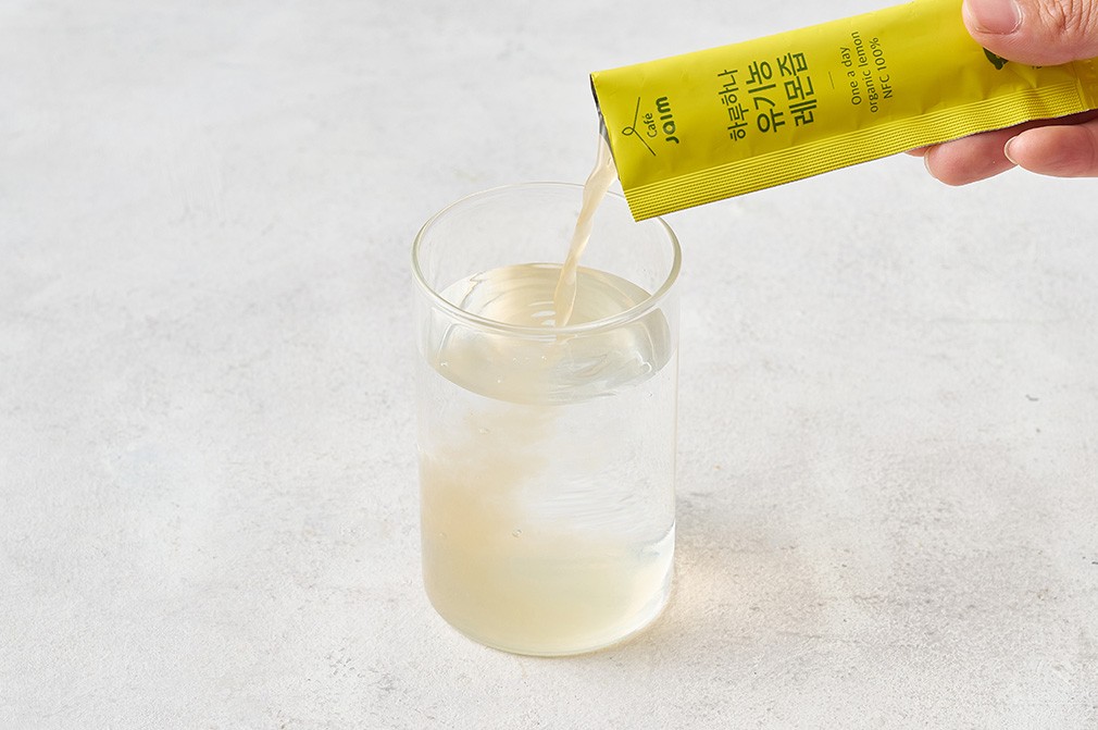 하루 한 포씩, 간편하게 섭취하기 좋은 자임의 레몬즙을 소개할게요. 파우치 한 포에 이탈리아산 유기농 레몬즙을 알차게 채웠답니다. 원액 그대로 즐겨도 좋지만, 물이나 탄산수에 태워 즐기면 한층 부담 없이 맛볼 수 있어요.
