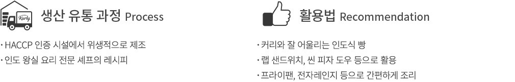 조리법 ・프라이팬 조리 시 : 예열한 프라이팬에 난을 올리고, 1장씩 30초간 구워 주세요.