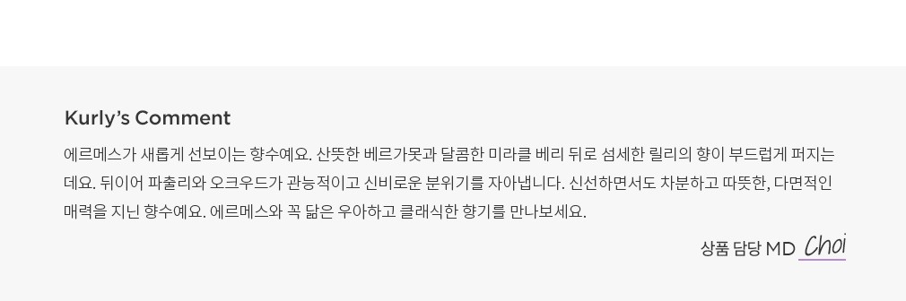 ・ 특징 : 부드럽고 우아한 플로럴 우디 향입니다.