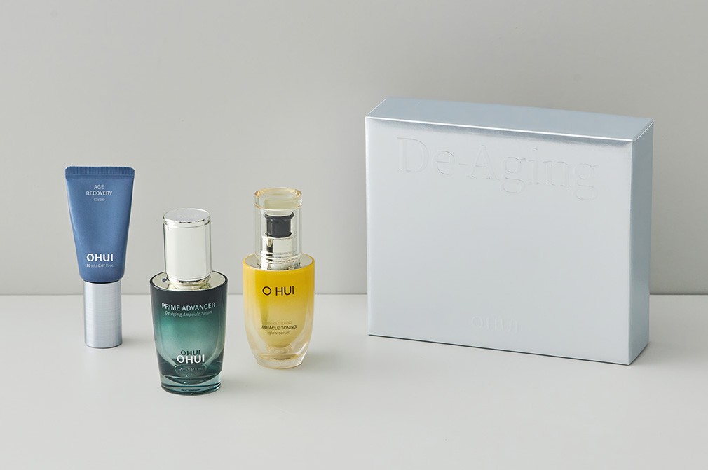 디에이징 솔루션 스타터 3종 선물세트 ・ 구성 : ①미라클 토닝 글로우 세럼, ②프라임 어드밴서 디에이징 앰플 세럼, ③에이지 리커버리 크림