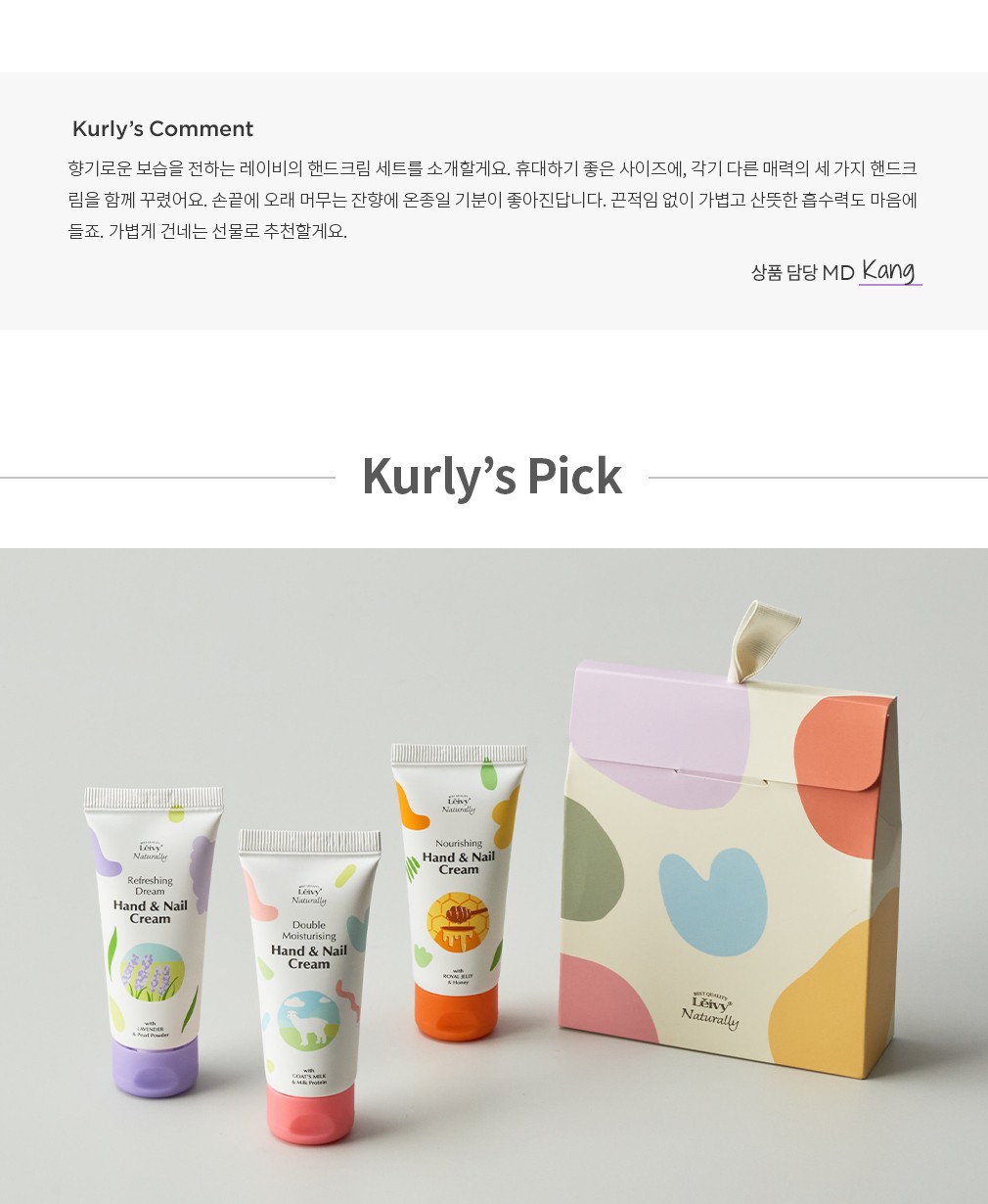 핸드앤네일 크림 세트 ・ 구성 : ①산양유 핸드앤네일 크림, ②라벤더 핸드앤네일 크림, ③로얄젤리 핸드앤네일 크림