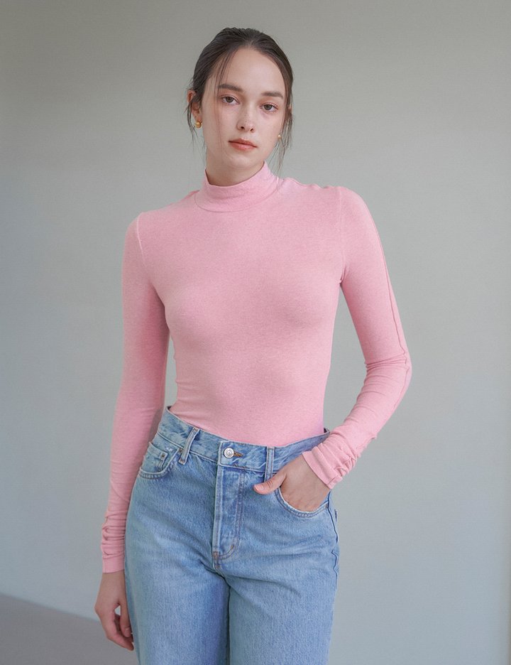 앙고라 혼방 원단을 사용하여 보온성이 뛰어난 목폴라 티셔츠입니다.