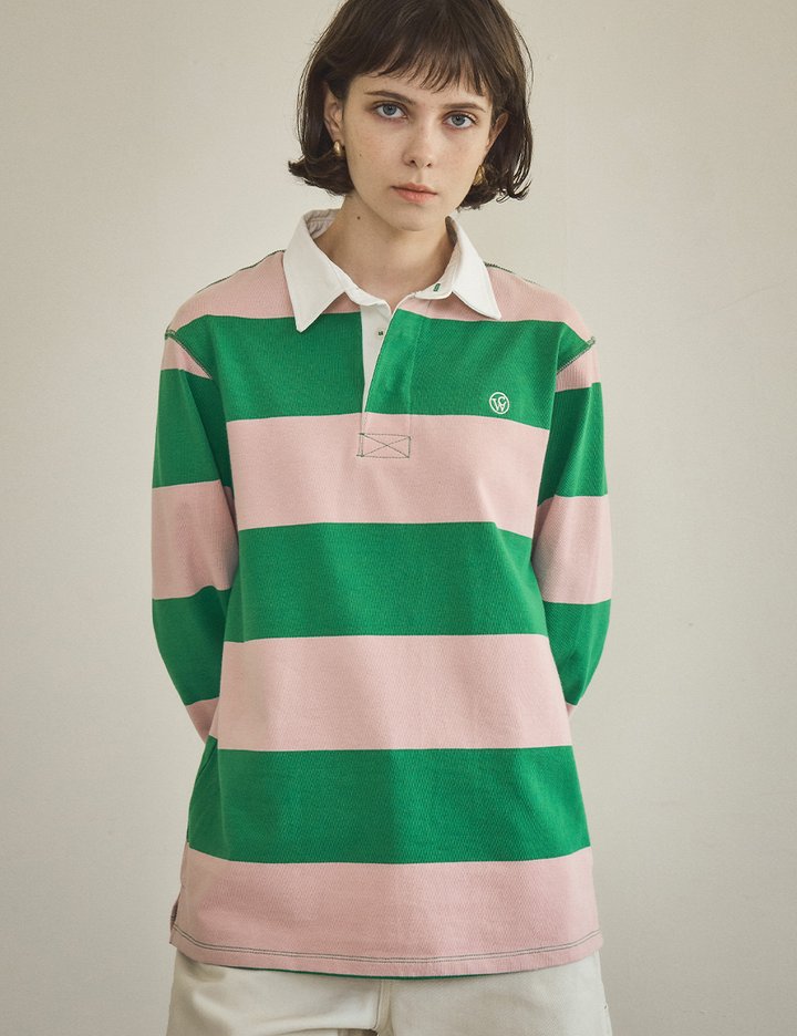 [반원 아틀리에] 스트라이프 칼라 티셔츠_그린(A3496)