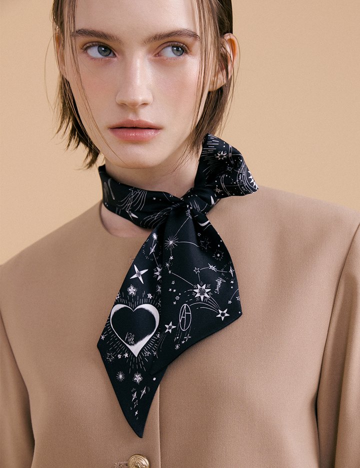 [아비나펠르] 조디악 롱 트윌리 실크 스카프 - 블랙 (블랙)