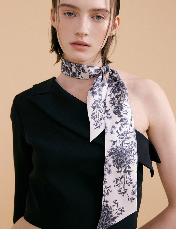 [아비나펠르] 르 자르댕 롱 트윌리 실크 스카프 - 차콜/아이보리 (차콜/아이보리)