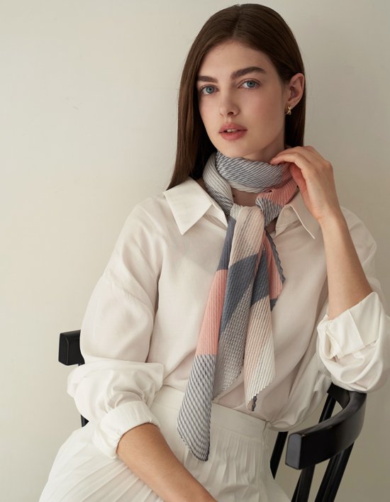 [엘르] 오션블럭 주름 롱 스카프 3컬러 (택1)