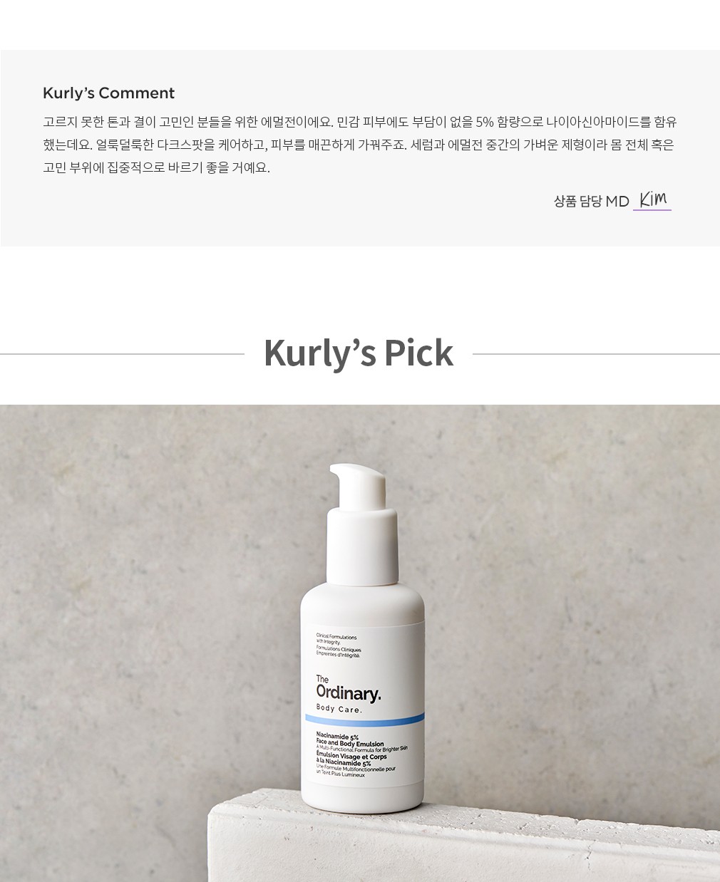 추천 루틴 1. 나이아신아마이드 5% 페이스 앤 바디 에멀전 : 고르지 못한 피부 톤과 결이 고민인 부위에 발라주세요.